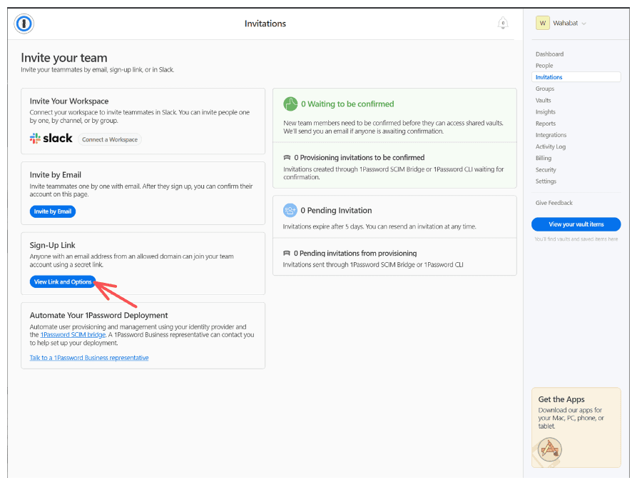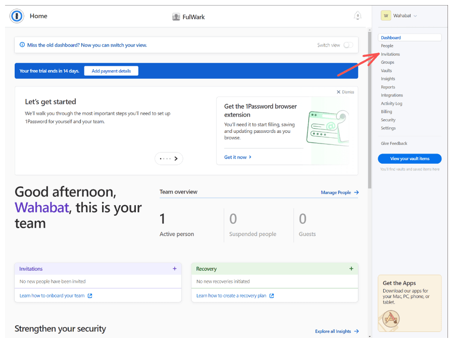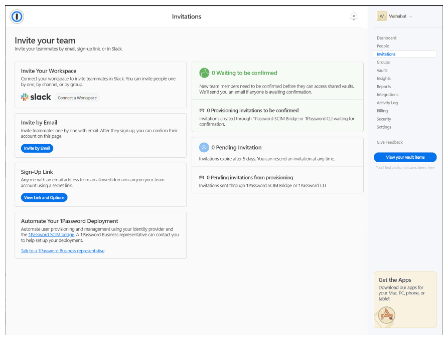 We highly recommend to read through the onboarding your team guide provided by 1password, but we’ll guide you through the basic steps to invite your team either way.