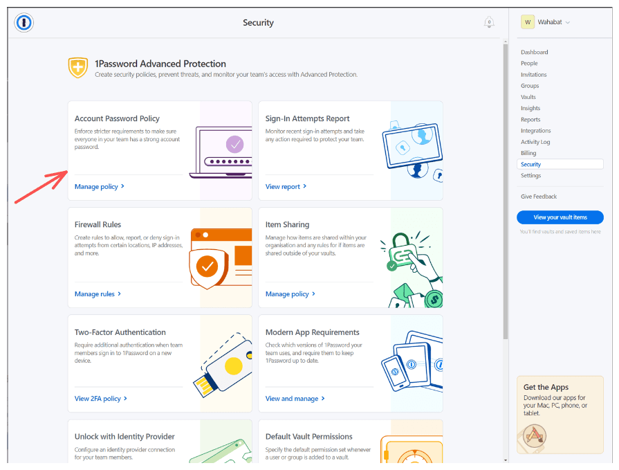 From there, you’ll see a bunch of options from 1Password Advanced Protection: